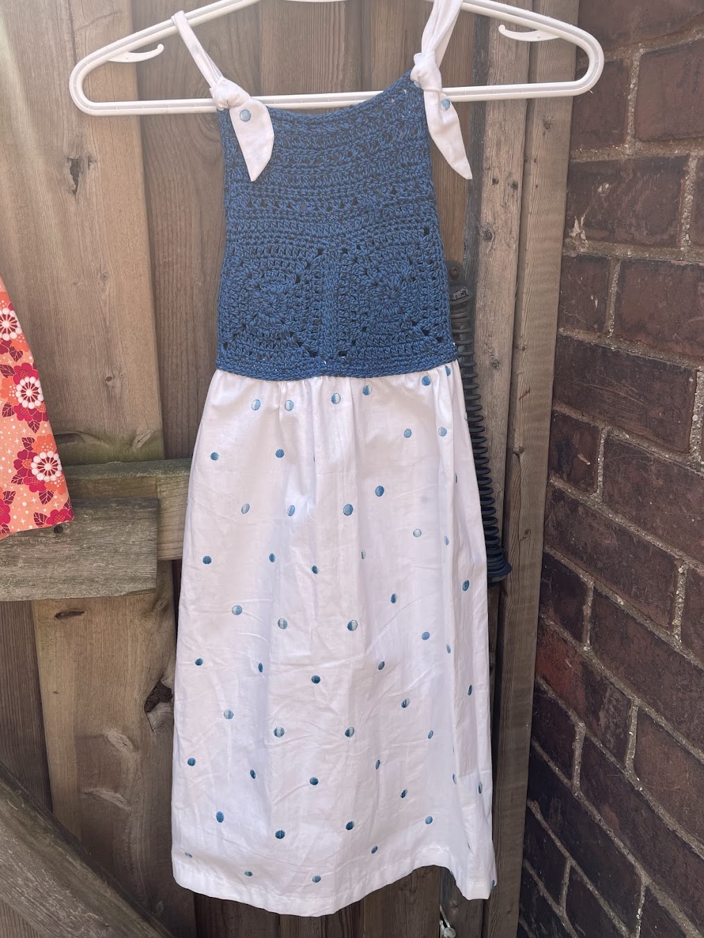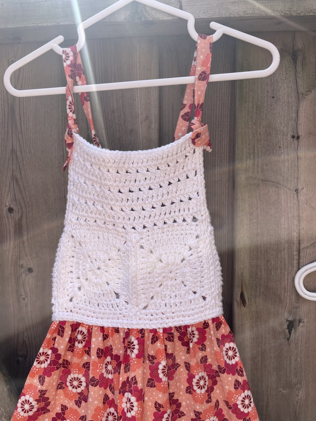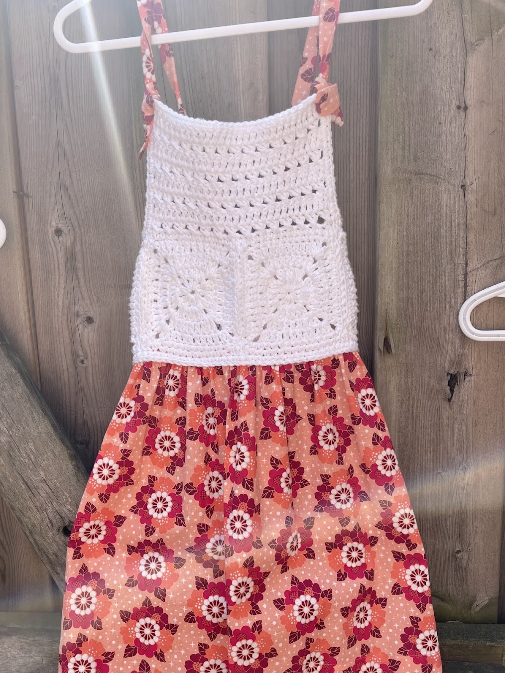These adorable handmade dresses are made with 100% cotton & crochet top. They were individually made by Sistering participants with love and care.